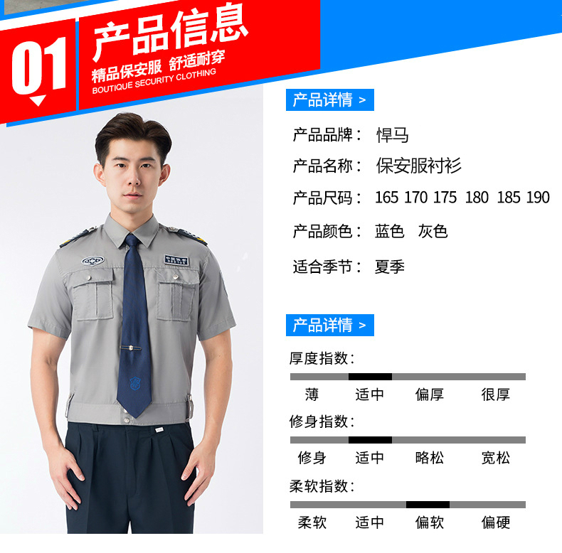 商品名称:神骁新式保安服秋装长袖衬衣夏装执勤服物业制服保安衬衫长袖保安制服保安工作服男灰色短袖上衣送标志和领带170L