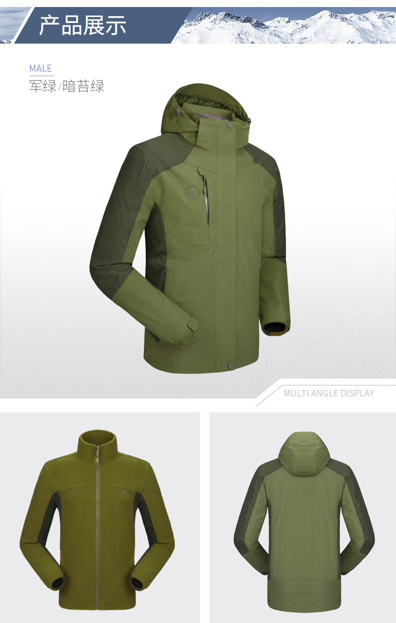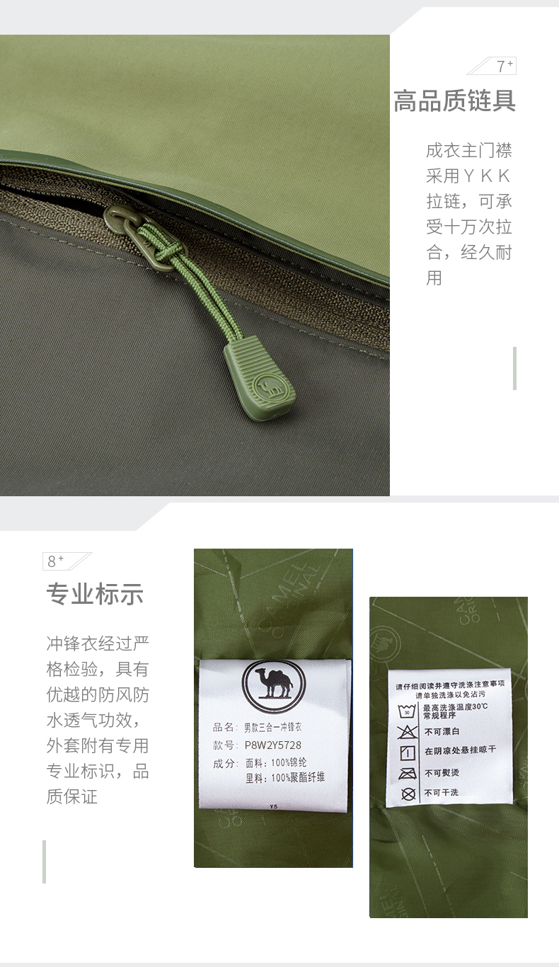 商品名称:骆驼牌户外三合一冲锋衣防风保暖男款冲锋衣P8W2Y5728军绿暗苔绿L