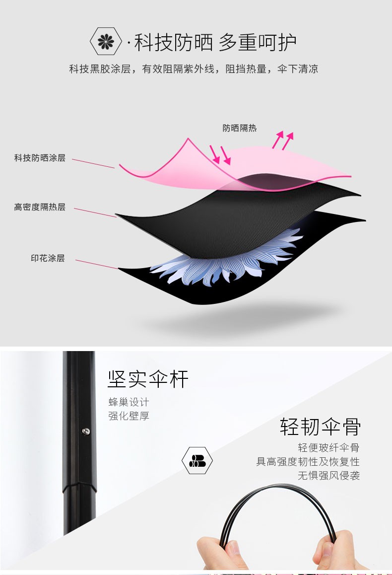 商品名称:天堂伞UPF50+晴雨两用伞防晒超强防紫外线小黑伞女神全遮光黑胶遮阳伞小清新三折叠太阳伞雨伞望日莲 深蓝