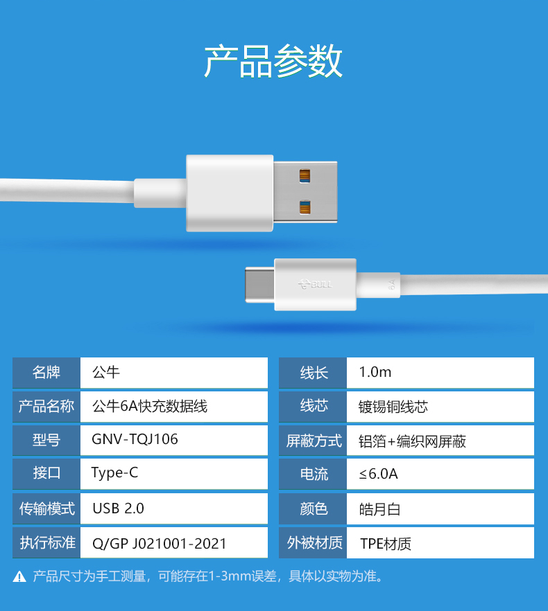 商品名称:公牛抗折断数据线GNV-TQJ106